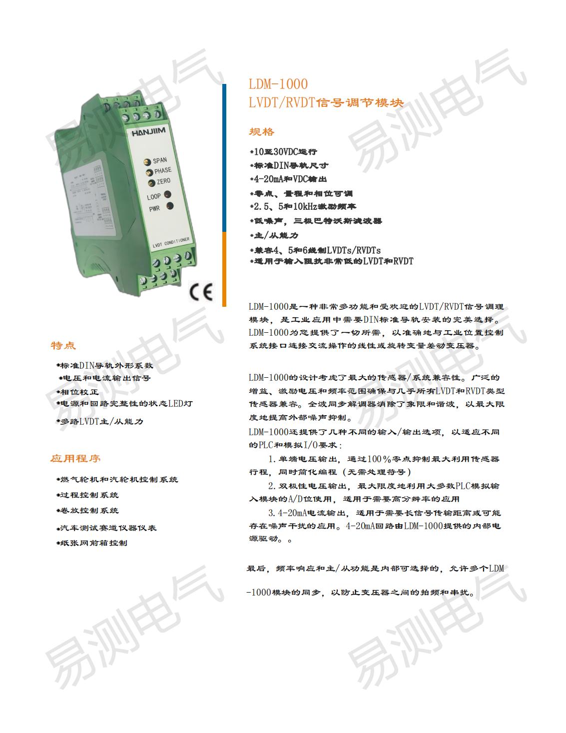LDM-1000 LVDT/RVDT調(diào)節(jié)器可以提供將位移和角位移變送器連接至工業(yè)位置控制系統(tǒng)的任何需要。